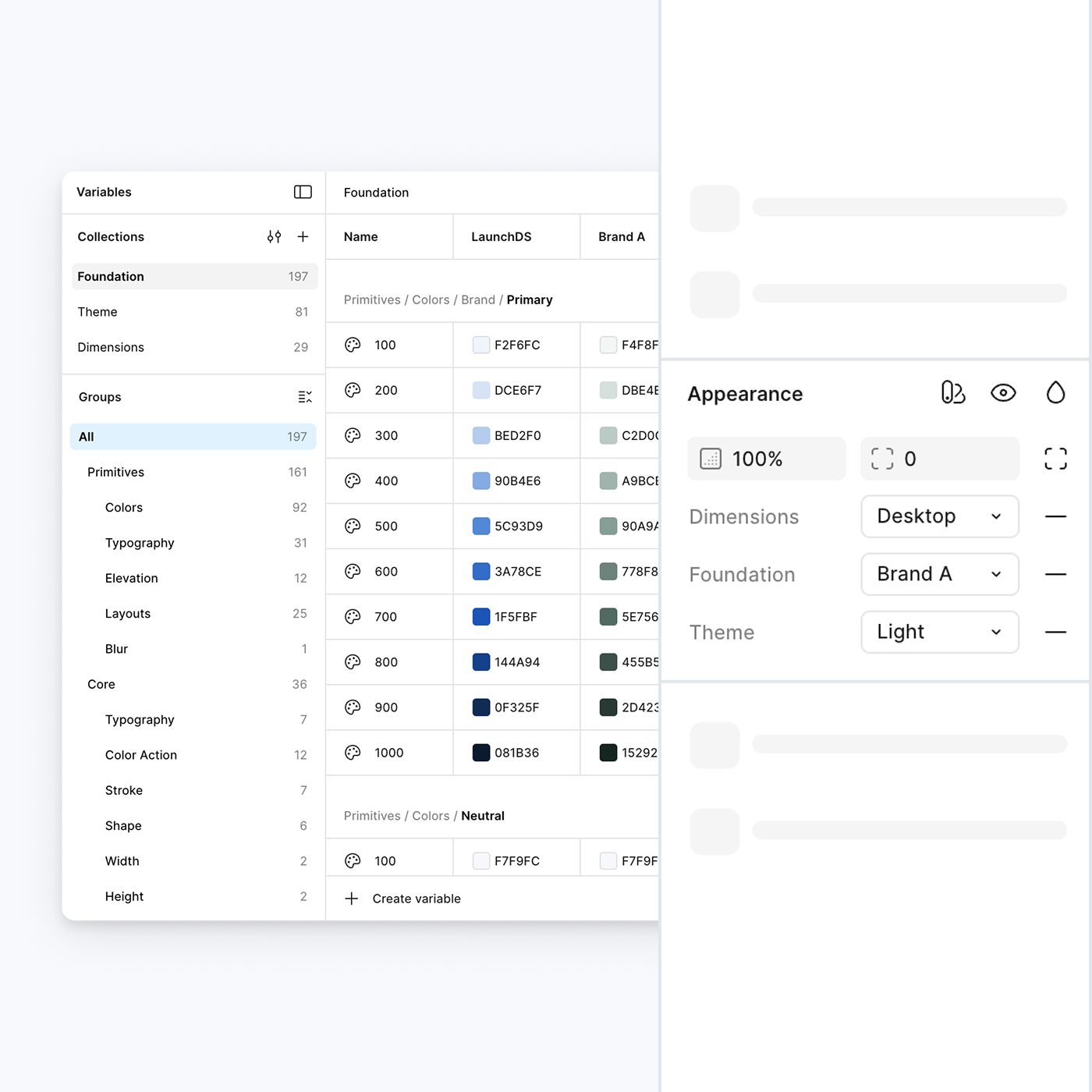 Absolutely. LaunchDS is structurally agnostic. By simply swapping the Primitives (colors, typography, radii) in the variable panel, the entire system transforms instantly. You can go from a sharp, electric Tech-Brand to a soft, organic Yoga-App in minutes, without touching the layout logic or component structure.