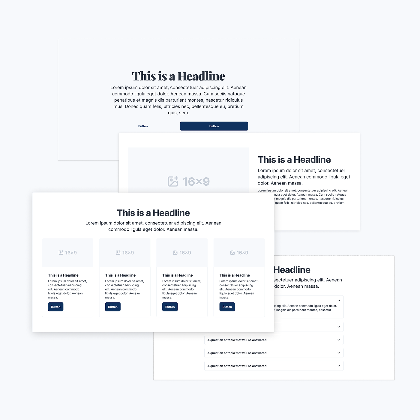 We’ve combined components into customizable, production-ready website sections: Hero Sections, Teaser Cards, FAQ Modules, Headers & Footers. Just include the Library in Figma Sites.